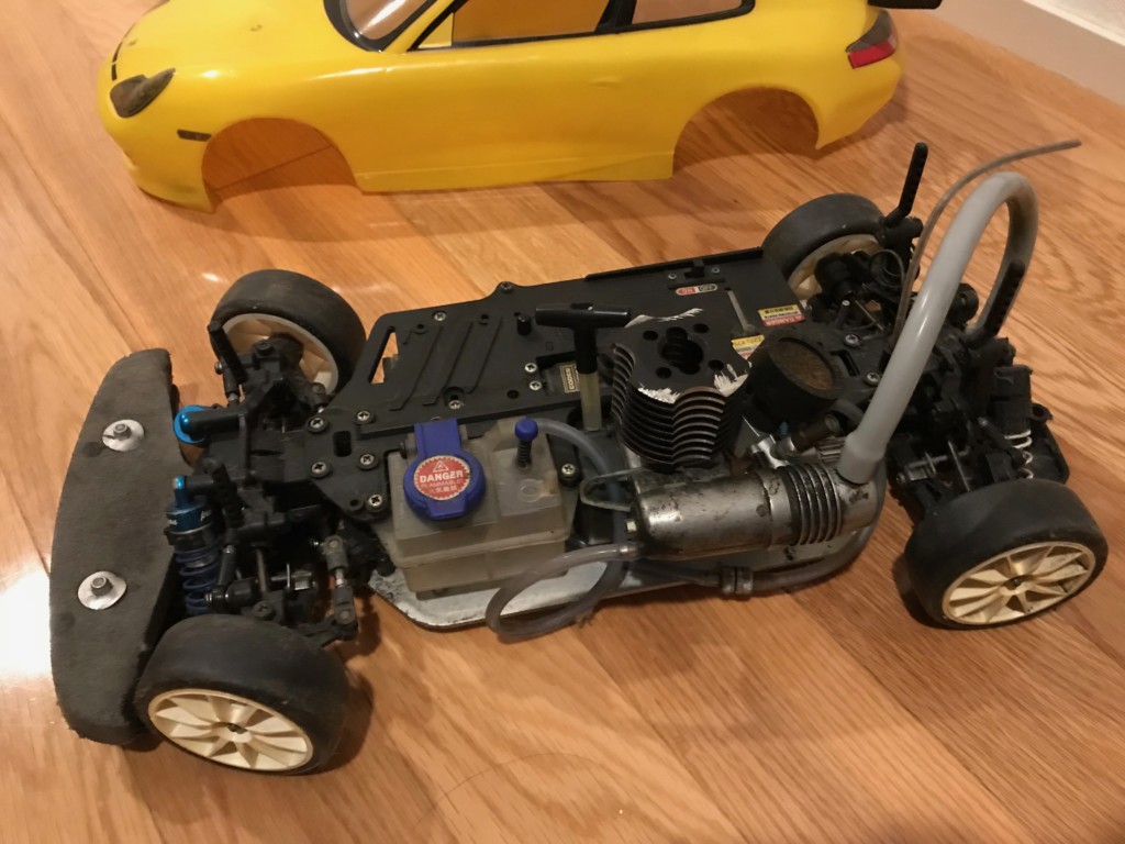 と言って、急に席を立ち何かを取りに別の部屋に消えていった。しばらくたって戻ってくると手には「ラジコン」が。(しかもポルシェ笑)