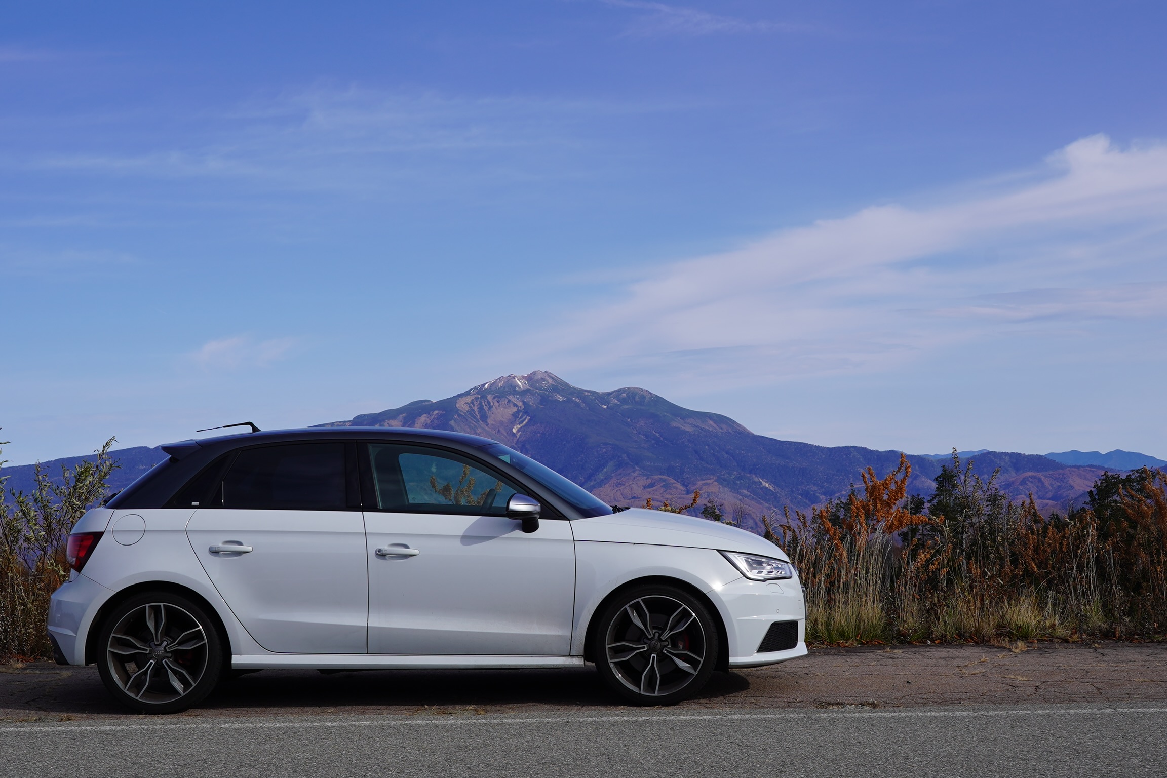 日の出前は氷点下9度ほどだった気温も、3-4度まで上昇している。皆、朝はゆっくりしたペースで、エンジンや車体、そしてタイヤを温めていく。チャオ御嶽の駐車場付近でクルマを止めて、皆で記念撮影したり、クルマを交換して乗ったりして思い思いに楽しんだ。