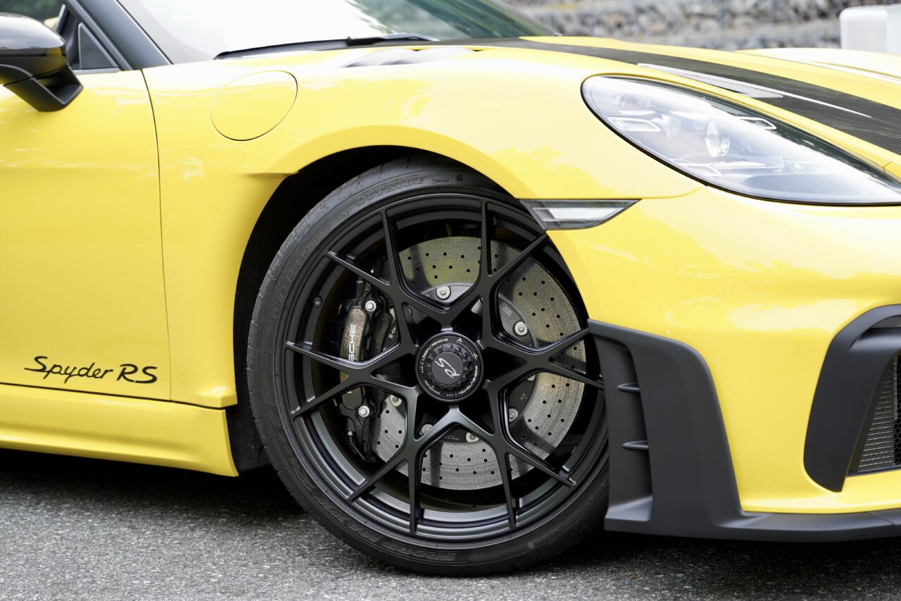 コーナリングで最も印象的だったのは、限界までの距離感が手に取るようにわかるという点だ。メーターにそんな表示があるわけではないのだが、あたかも「限界のバロメーター」が頭の中に浮かんでくるような感覚なのである。今50%、今60%、今80%。どこまで攻められるのか、これ以上行ったら滑るのか。その境界線がステアリングとシャシー全体からフィードバックされてくる。どのコーナーでも安心して踏んでいけるし、安心して止まれる。2年前に718ケイマンTで同じ富士を走った時も「走りやすいクルマだ」と感じたが、スパイダーRSはそれにさらに輪をかけて走りやすかった。