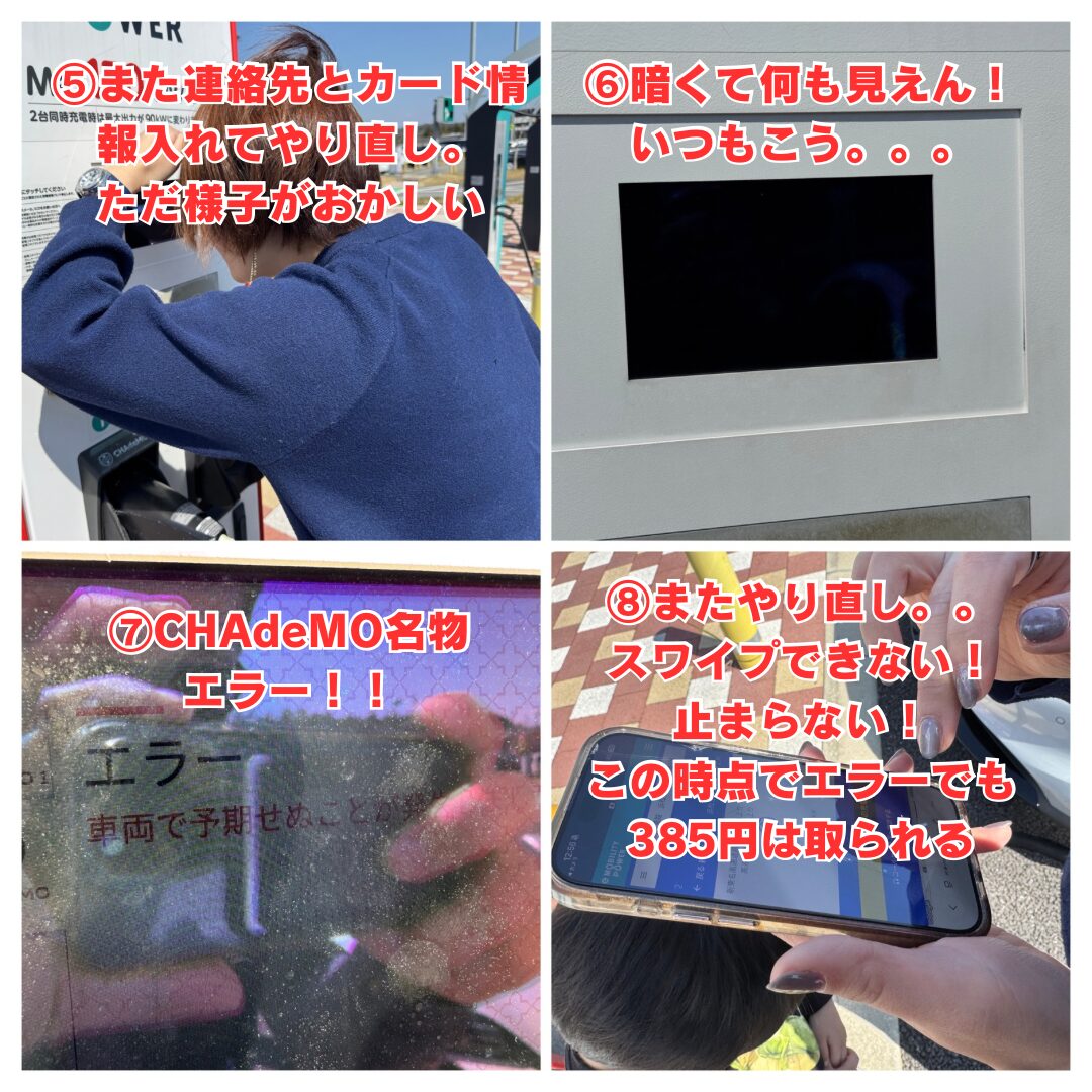 更讓人火大的,是CHAdeMO規格為了高度安全設計過於嚴謹,常出現車輛與充電器預先通訊失敗的錯誤,以及不合理的費用扣款。費盡心力完成資料輸入,剛開始充電卻因錯誤導致停止運作。甚至充電根本沒開始,初期幾百元的費用依舊被扣掉。